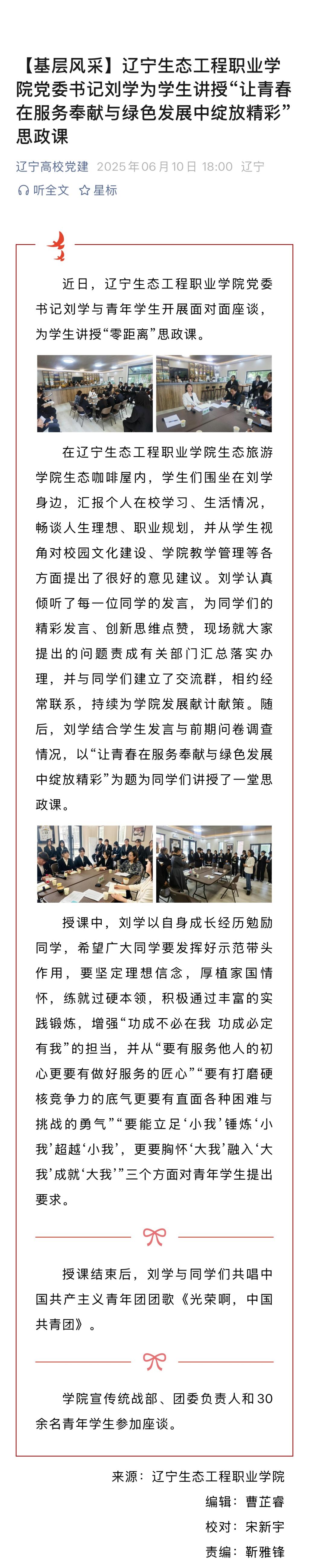 【辽宁高校党建】【基层风采】国产亚洲综合一区二区三区_亚洲欧美日韩中文天堂_尤物在线观看视频不卡无码_国产最新精品亚洲2025不卡_亚洲成Av人在线观看片水蜜桃党委书记刘学为学生讲授“让青春在服务奉献与绿色发展中绽放精彩”思政课