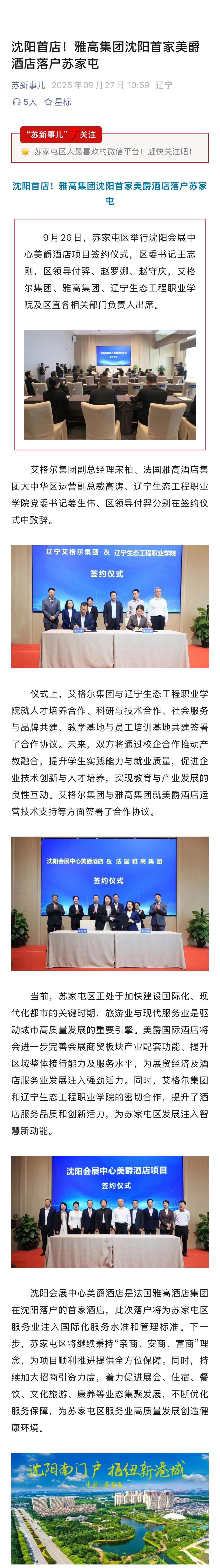 【苏新事儿】沈阳首店!雅高集团沈阳首家美爵酒店落户苏家屯